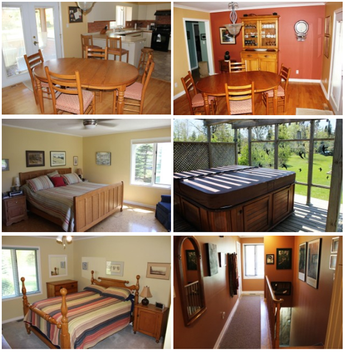 | Parklike 2 acre setting with custom built just under 2,000 sq.ft 3 bed, 3 bath home. Features include hardwood floors,central air,screened in porch,hot tub area,walkout to extensive decking,large living room with woodburning fireplace, crown moulding,ensuite bath,large windows,french doors,oversized double garage,full unfinished basement.A must see if you want quality craftsmanship & attention to detail. |
